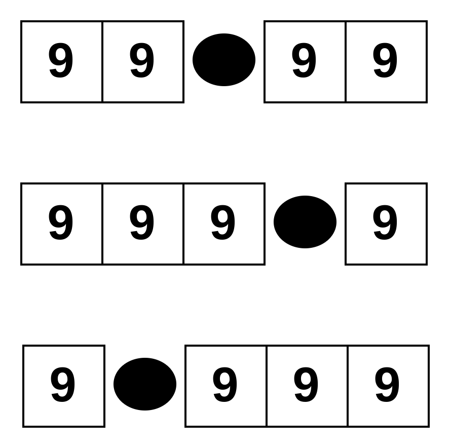 In the first example we can represent whole numbers in the range 0 - 99 and after the decimal point we can have two decimal places. In the second example we can represent whole numbers in the range 0 - 999 but we only get one decimal place. In the third example we can only represent whole numbers in the range 0 - 9 but we can have three decimal places.